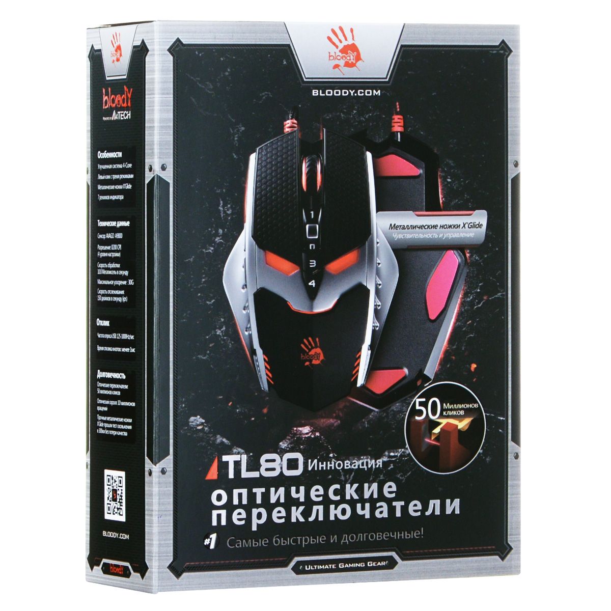 Проводная мышь A4Tech Bloody TL8 станет оправданным приобретением для любителей игр за компьютером. Устройство в алюминиевом корпусе, с покрытием из черного с серебристыми вставками пластика с инновационным покрытием Soft touch предназначено для работы правой и левой рукой.