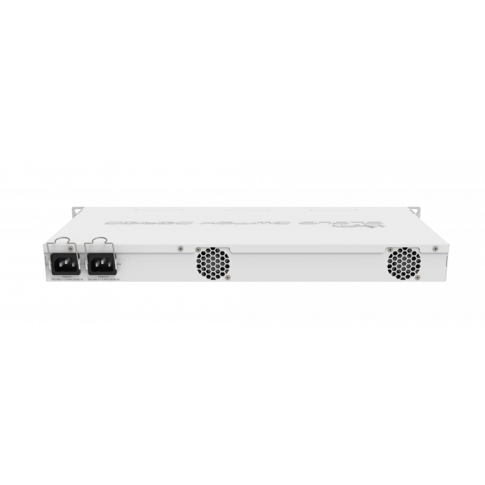 Устройство поставляется в стоечном корпусе высотой 1U с двумя источниками питания 100-240В с функцией переключения при отказе. Консольный порт RJ45 доступен для управления и отладки, а кнопка режима может быть настроена для выполнения любых команд RouterOS.