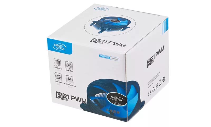 DEEPCOOL Theta 21 PWM охлаждает процессор с той интенсивностью, с которой необходимо в данный момент, за счет ШИМ-управления скоростью вращения вентилятора. Прокачиваемый объем воздуха равен 45,91 CFM на скорости 2400 об/мин.