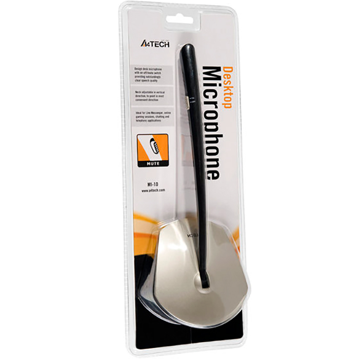 Микрофон для компьютера A4-Tech MI-10 A4-tech MI-10 - удобная модель настольного микрофона отлично подходящая как для домашнего интернет общения или записи голоса, так и для открытых конференций. Купив вы весьма удивитесь ее компактности, а в ее удобстве в использование будите радоваться что приобрели такой микрофон по дешевой цене.