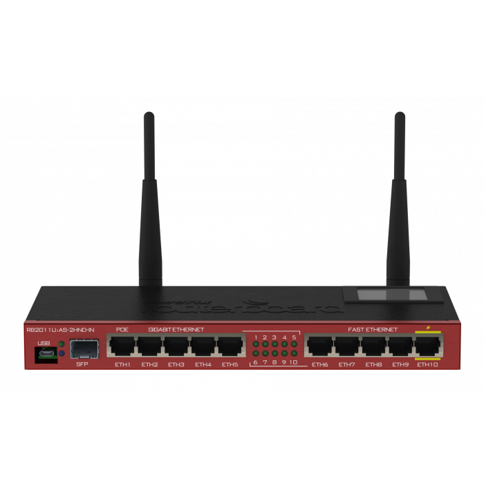 RouterBOARD 2011UiAS-2HnD обладает большинством функций и интерфейсов от всех наших беспроводных маршрутизаторов. Он работает на новом сетевом процессоре Atheros 600 МГц 74K MIPS, имеет 128 МБ ОЗУ, пять портов Gigabit LAN, пять портов Fast Ethernet LAN и отсек SFP (модуль SFP не входит!). Кроме того, он оснащен мощной двухканальной 2,4 ГГц (2312-2732 МГц в зависимости от правил страны) беспроводной точкой доступа 802.11bgn, последовательным портом RJ45, USB-портом и лицензией RouterOS L5, а также настольным корпусом с источником питания, двумя антеннами Omni 4 дБи и ЖК-панелью. - всего за 129 долларов!