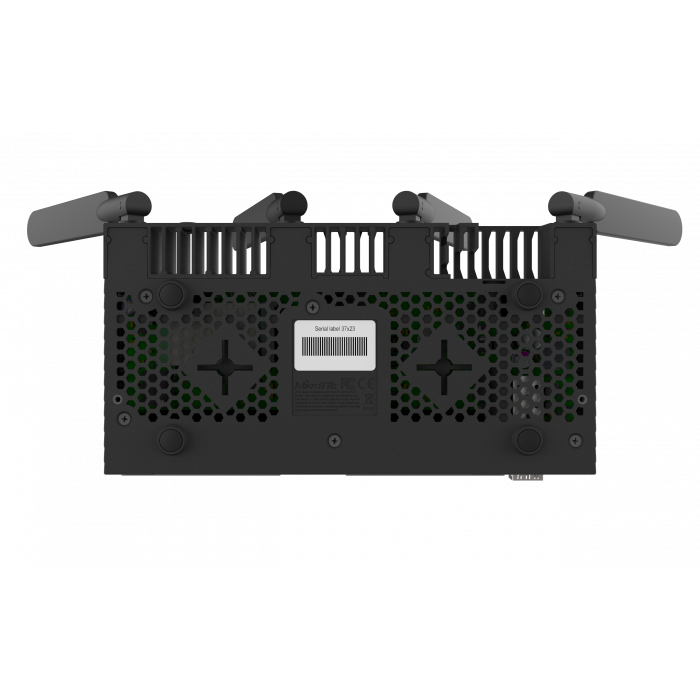 RB4011iGS+5HacQ2HnD-IN (модель WiFi) - это двухдиапазонный четырехканальный модуль с поддерживаемой скоростью передачи данных до 1733 Мбит/с в 5 ГГц. Для устаревших устройств устройство также имеет двухканальную беспроводную карту 2 ГГц, установленную в слот miniPCI-e.
