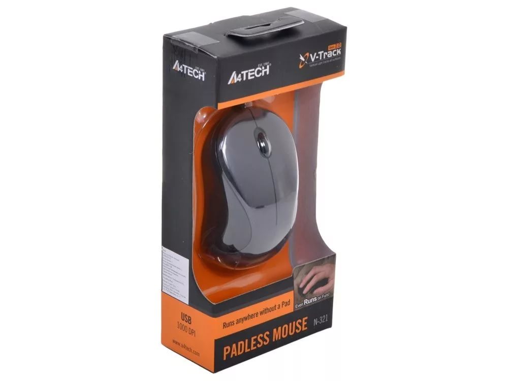 USB Проводная мышь A4-Tech N-320 - это мышь с технологией V-Track при работе используют вертикально направленный луч, которому необходим совсем небольшой участок поверхности для определения положения манипулятора. Вертикальный оптический луч глубоко проникает в структуру поверхности и обеспечивает точную и быструю работу манипулятора на любых "пролемных" поверхностях.