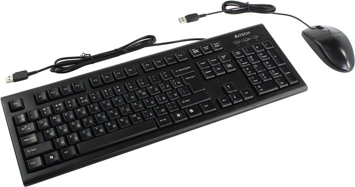 USB Проводной комплект клавиатуры и мыши A4-Tech KR-8520D - это комплект из классических клавиатуры и мыши. Он прекрасно подойдет для рабочих офисных/учебных машин либо домашних универсальных компьютеров. Клавиатура обладает всеми необходимыми клавишами для полноценной работы за компьютером, включая функциональные и цифровой блок. Мышь имеет стандартное разрешение 800 Dpi, чего будет достаточно для комфортной работы с ней. Также она для большего удобства пользователя имеет третью кнопку с функцией двойного клика. Интерфейс подключения комплекта - USB.